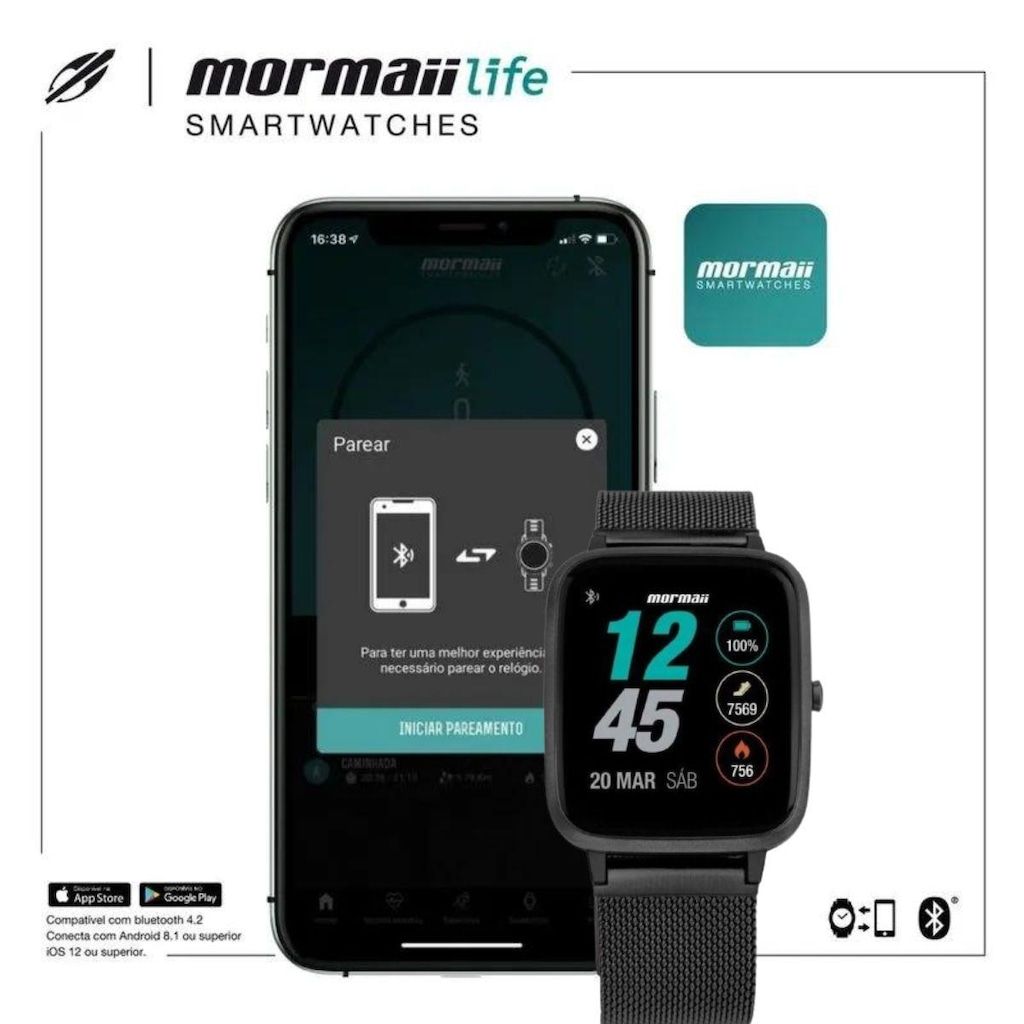 Com um aplicativo exclusivo e totalmente em português, o Smartwatch Mormaii Life GPS oferece resumos e históricos de atividades, definição de metas e preferências, vídeos tutoriais e uma central de ajuda.